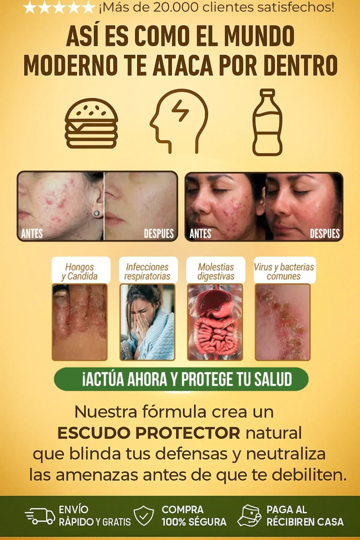El estrés de la universidad me brotaba la piel y me bajaba las defensas. Este producto fue mi salvación. Más energía y mi cara está limpia..¡increible!